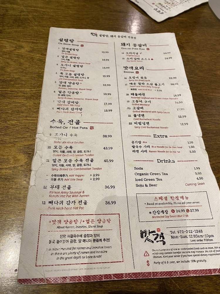 Maht Gaek, a Korean restaurant located in Carrollton, TX, is a must-visit spot for food enthusiasts craving authentic and flavorful dishes. Known for its juicy and flavorful pork ribs, crispy seafood pancake, and spicy tofu soup, Maht Gaek delivers a culinary experience that truly satisfies. The generous portions and delicious side dishes make it a perfect choice for group dinners. The attentive service and inviting ambiance add to the overall dining experience. The seafood pancake, marinated crab, and grilled pork ribs receive high praise from customers, showcasing the diverse and delectable menu offerings at Maht Gaek. For a taste of top-notch Korean cuisine in Dallas, Maht Gaek is the go-to destination.